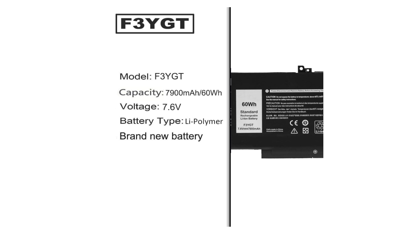 - Compatibilité avec batterie: F3YGT,0F3YGT,DM3WC,0DM3WC,DM6WC,2X39G,KG7VF,V4940,451-BBYE,453-BBCF. [s’il vous plaît noter] la batterie que nous faisons est 7.6v 60wh 4 – cell f3ygt, pas 11.4v 42wh 3 – cell dj1j0, ils ne sont pas compatibles.