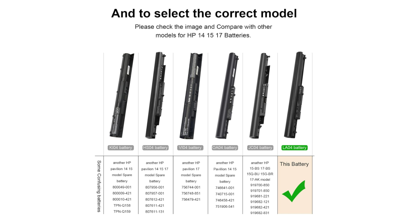- Type de batterie : Li-polymère, cellule : 6 cellules. Modèles compatibles : HP LA04 728460-001 776622-001 28460-001 728248-2222222223. 1 752 237-001a HSTNN-IB5S HSTNN-IB6R HSTNN-UB5M HSTNN-UB5N HSTNN-Y5BV HSTNN-YB5M HSTNN-YB5N F3B96AA LA04041 LA04041-CL LA04041DF LA04041DF-CL TPN-Q130 TPN-Q13. 1 TPN-Q132